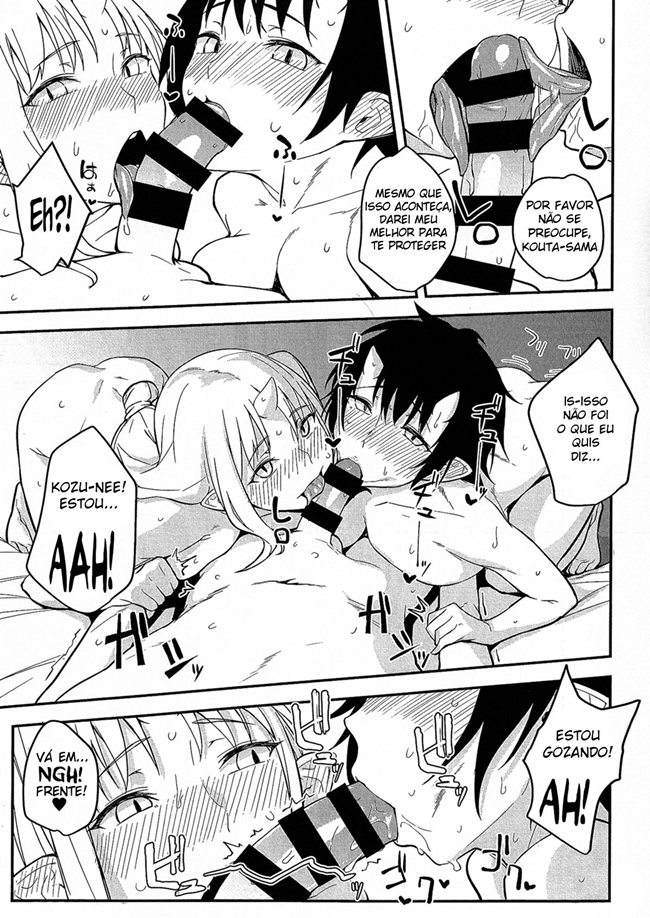 Kozue finalmente conseguiu o que tanto queria que era foder bem gostoso com Kou. Então no dia seguinte Kou está mais uma vez fodendo bem gostoso sua ancestral quando Kozue acaba aparecendo. Ela fica surpresa com os dois transando mais muito excitada também, Mizuki então viu como ela ficou e decide fazer algo novo. Ela decide fazer Kozue se juntar a eles para ficar ainda mais excitante o hentai manga.
