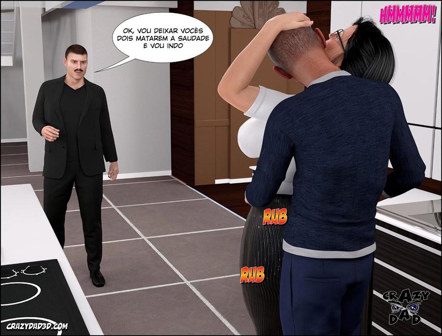O pastor corno voltou para sua casa e nem imagina que sua esposa e seu sogro anda transando em todos os locais de sua casa. Ele continua com as freiras em sua cabeça lembrando da aventura sexual que fez com as duas ao mesmo tempo. Luciana por sua vez aproveita que seu marido foi pro banho e voltou a praticar incesto hentai com seu papai.