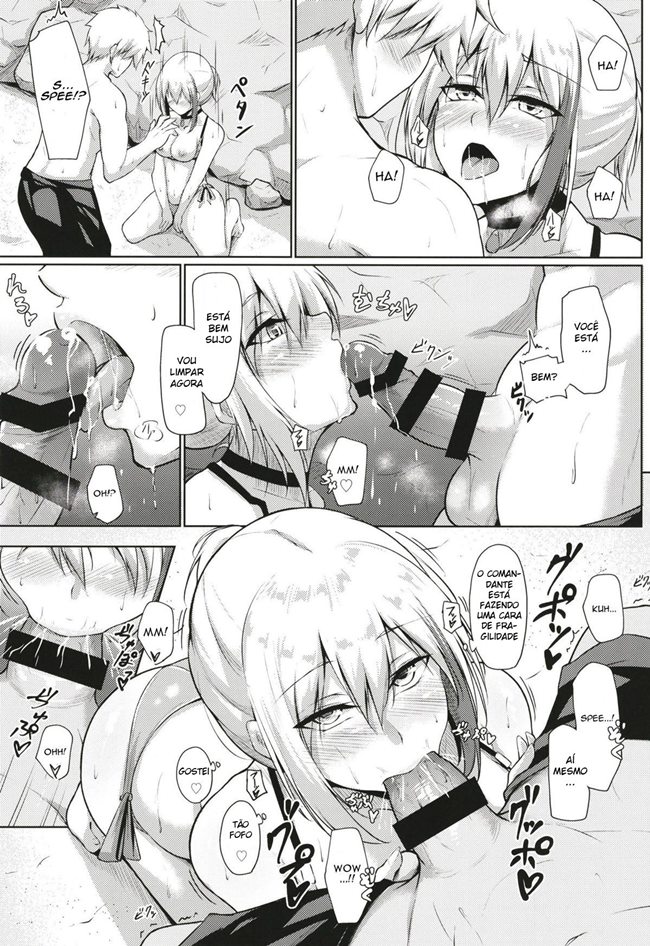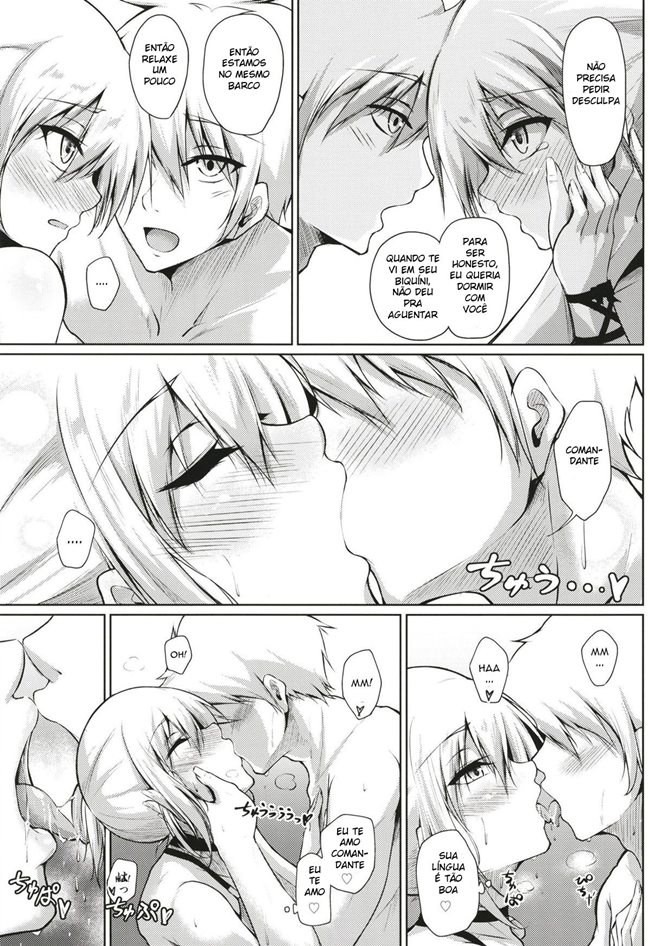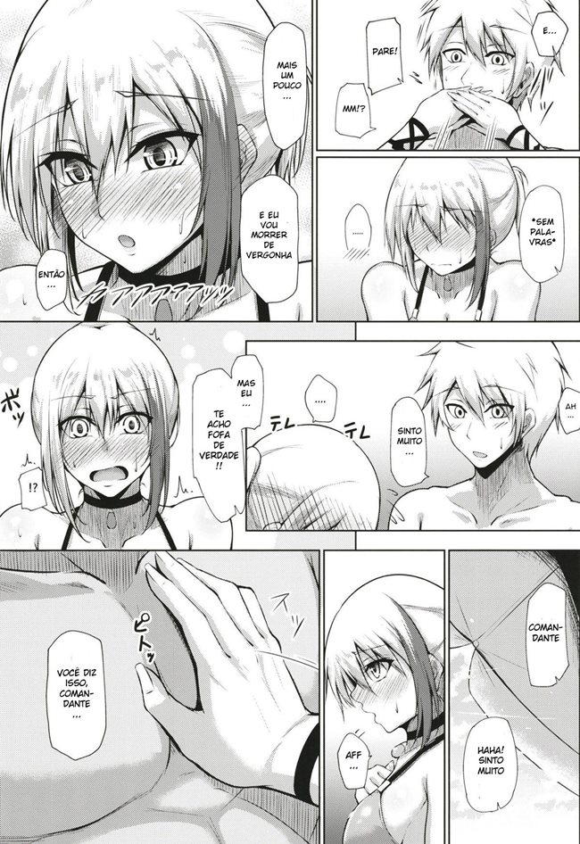 Um belo dia para aproveitar um mar e o sol, essa tripulação tirou o dia para curtir um pouco. Ele estava sentado na praia vendo o céu azul, as pessoas se divertindo quando de repente sua capitã acaba chegando. Ele acaba levando um susto ao ver sua capitã só de inquine, ele nunca imaginou que ela era gostosa assim. Ela então pergunta para ele o que ele achou do biquíni olhando para o pau dele que já estava duro.