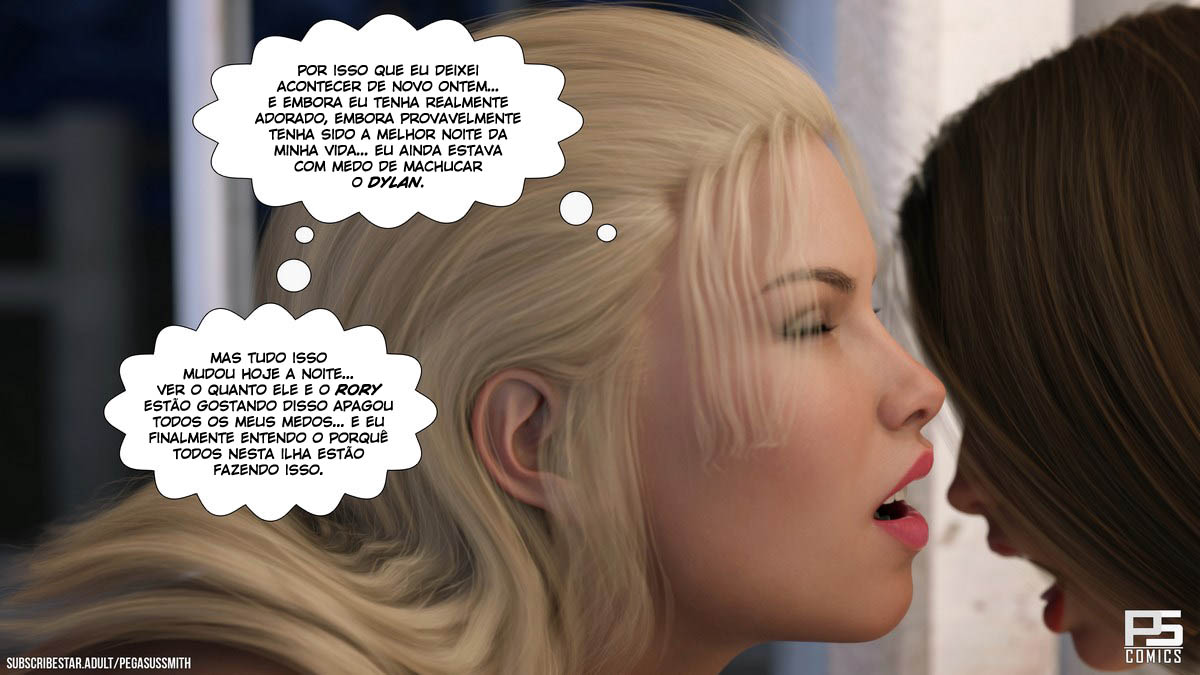 Brandi mesmo estando confusa com tudo que vem acontecendo nessa ilha dos prazeres continha com sua buceta cheia de tesão. Seu filho está muito feliz nesse local é tem trepado com varias gostosas que está ali. Ela acaba flagrando ele mais uma vez metendo com algumas gostosas do hentai 3d e como sempre sua bucetinha ficou toda aguada.