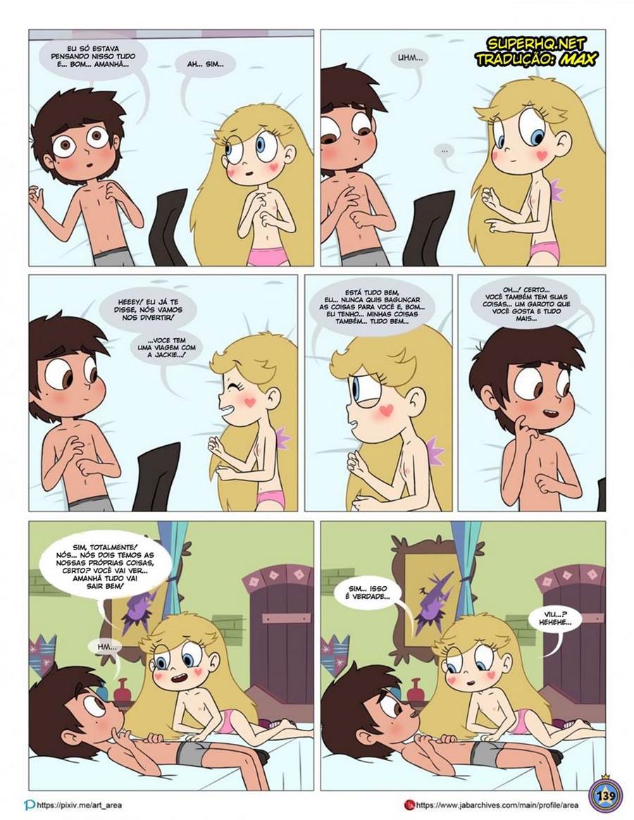 Star está prestes a ajudar seu melhor amigo Marco a beijar pois ele estava afim de uma garota e não sabia como a beijaria. Então eles acaram indo praticar pois ela como sua melhor amiga tinha essa responsabilidade. Porem ela percebeu que ela ficou excitado é ela também estava com sua bucetinha bem molhada. De fato eles não conseguiram mas se segurar e acabaram começando a foder bem gostoso.