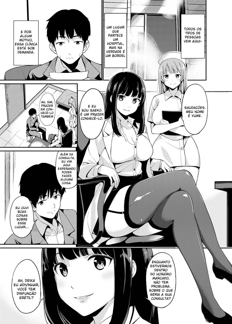 Uma medica gostosa e sua enfermeira peituda abriram uma clinica para homens que sofre de ejaculação precoce. Elas ensina a esses homens durar mas tempo fazendo sexo é isso elas conseguem fazer praticando com eles. De fato essa clinica e um alvo para homens que sofrem desse trauma e agora vamos conferir tudo isso em quadrinhos eroticos.