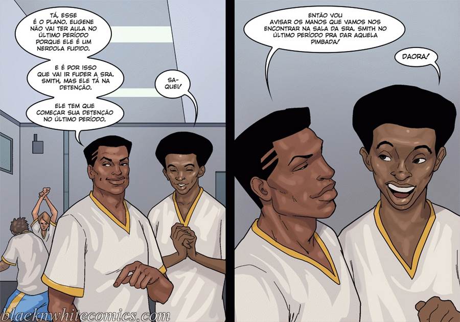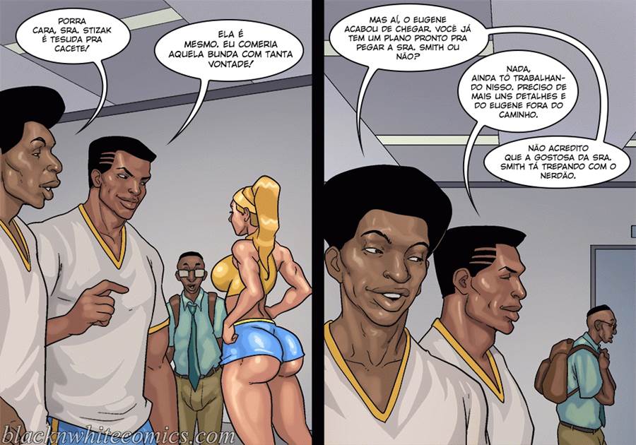 Depois que a fama do Eugene se espalhou na escola ele anda metendo com todas as alunas inclusive suas professoras bem gostosinhas. Uma danadinha estava mesmo afim de saber se os botados eram verdade e quando foi olhar teve a certeza que era. Agora essa danadinha está mamando bem gostoso o pau desse sacana que estava adorando as chupadas dessa gatinha. Mas o zelador flagrou esse Hentai interracial deles é agora quer experimentar a bucetinha da aluna.