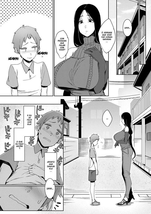 Os jovens estão conversando e falando sobre o dever de casa. Quando uma mulher bem gostosa passa por eles, um comenta que ela mora na sua vizinhança. Rumores dizem que ela causa arrepios, mas reparando mais nela eles notam que é bem gata. O jovem começa a olhar o seu corpo, os seus seios grandes e gostosos chamam mais atenção, deixando ele excitado.