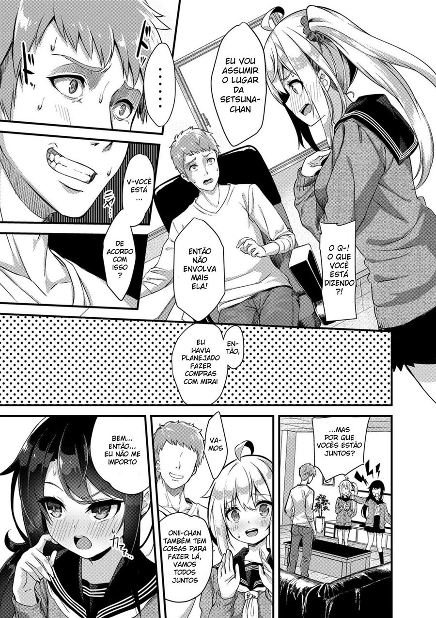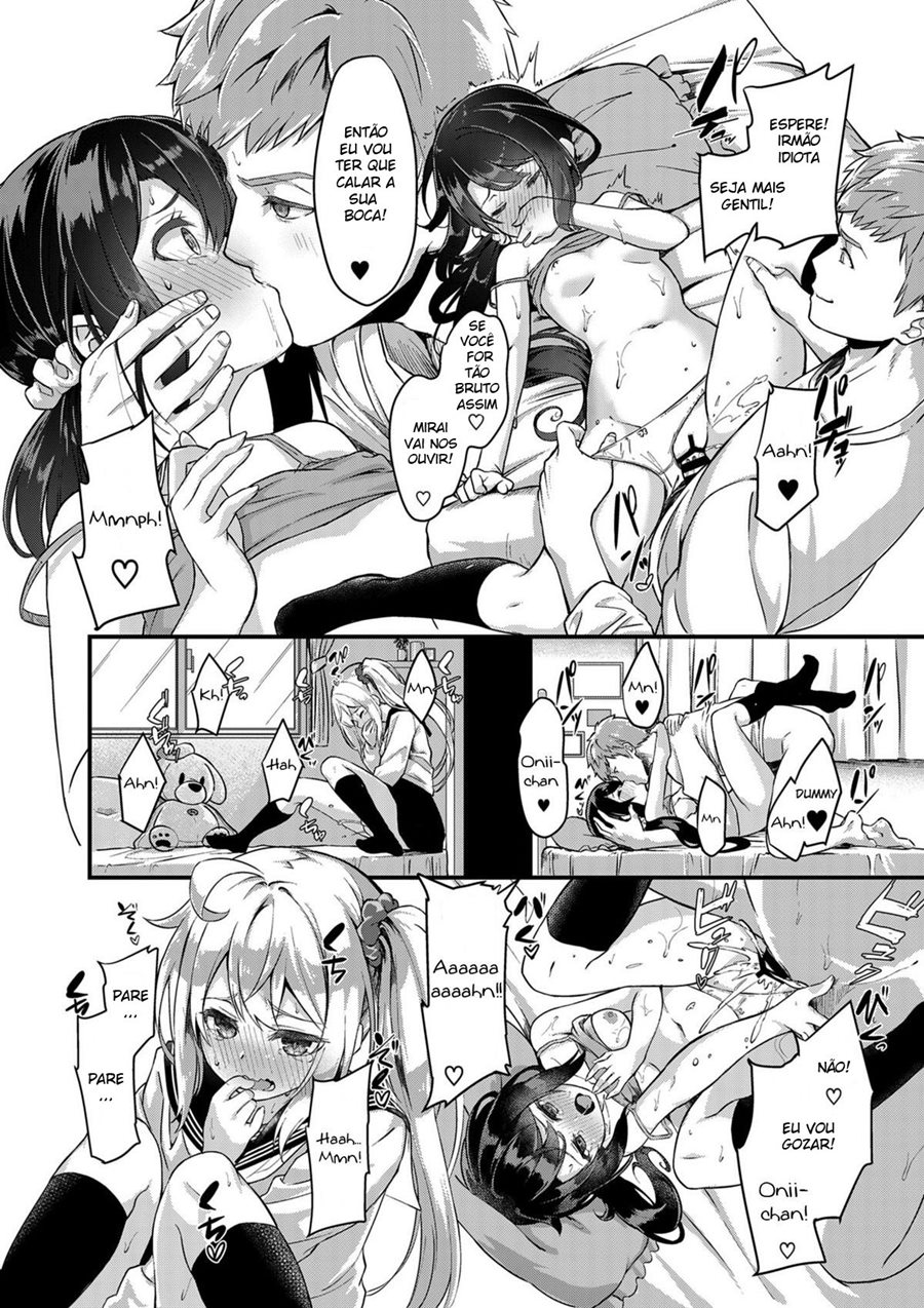Enquanto ele estava ensinando sua irmã gêmea a ter bons modos com ele, a irmã foi até o quarto da irmã para poder conversar com ela. Mas assim quando ela chega ela pega seu irmão mais velho fodendo a sua irmã. Ela ficou em choque mas ao mesmo tempo ficou extremamente excitada. Então ela ficou na porta do quarto se masturbando até eles terminarem. Depois ela foi para o seu quarto e estava louca para que seu irmão fizesse a mesma coisa com ela.