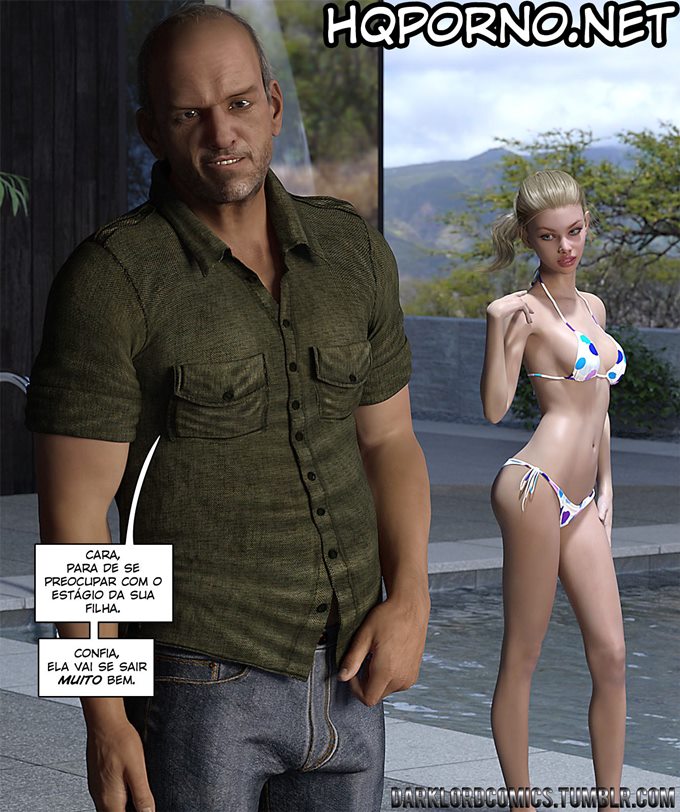 O fazendeiro sai e pede para seu criado ficar de olho na filha dele. Assim que seu patrão então sai ele vai atrás da filha dele para poder ver o que ela está fazendo. Ele encontra ela na piscina e como só estão os dois na fazenda ela vai aproveitar esse momento a sós com ela. Então ele diz para ela que o pai dela pediu para ele tomar conta dela, enquanto ele está fora. Mas esse velho pervertido está com outras intenções com a filha de seu patrão, e vai aproveitar para foder essa loirinha safada.