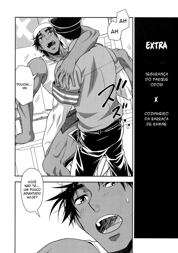 No parque Odori exite um prédio de arquivos muito famoso naquela região. Mas atrás desse prédio existe uma barraca de lamen mais famoso ainda. Nessa barraca de lamen que pede o prato principal e como toda a comida, ganha um brinde da casa. Então sem saber desse brinde, um novo cliente foi até lá e comeu toda a sua comida. Então agora o cozinheiro diz que ele tem uma surpresa, e a surpresa é foder o cuzinho dele bem gostoso estilo yaoi porno.