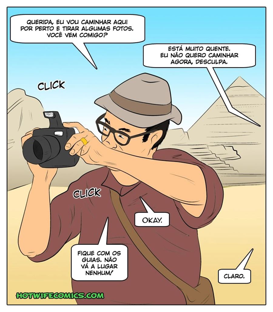 Erica uma mulher casada e muito depravada que saiu para uma viagem ao lado do seu marido corno. Ele esta olhando tudo eufórico e feliz com as descobertas que vem fazendo no decorrer da viagem. Essa gostosa anda meio entediada e devido a isso quer buscar uma forma de se divertir. Ela então vai atacar os rapazes que fazem parte da viagem do marido fazendo hq de sexo com eles.