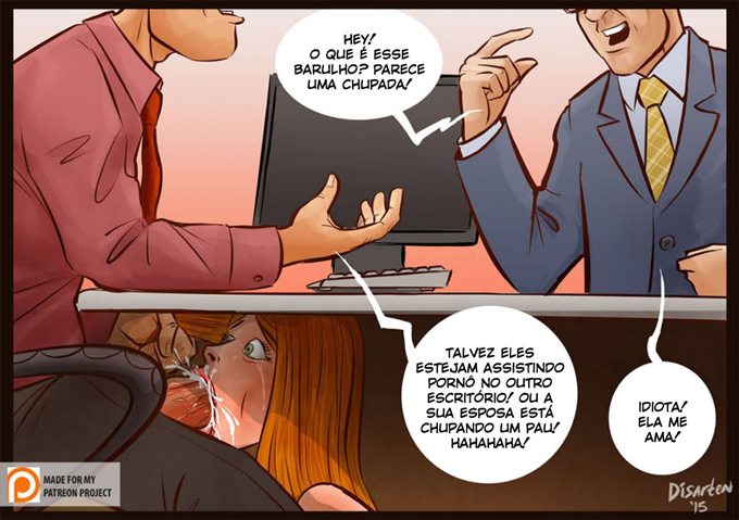 Essa milf safadinha trabalha na mesma empresa que seu marido só que ela trabalha para o chefe dele como secretaria. Seu chefe está prestes a ter uma reunião com o marido dela e essa putinha está debaixo da mesa chupando o pau dele. Ele então diz para ela que o marido dela pode entrar na sala a qualquer momento e que é para ela continuar com o que ela está fazendo sem fazer barulho. Então assim que ele chega e começa a conversar com ele, ele começa a escutar um barulho estranho e diz que parece o barulho de uma chupada. Seu chefe então diz que deve ser alguém assistindo hq pornô.