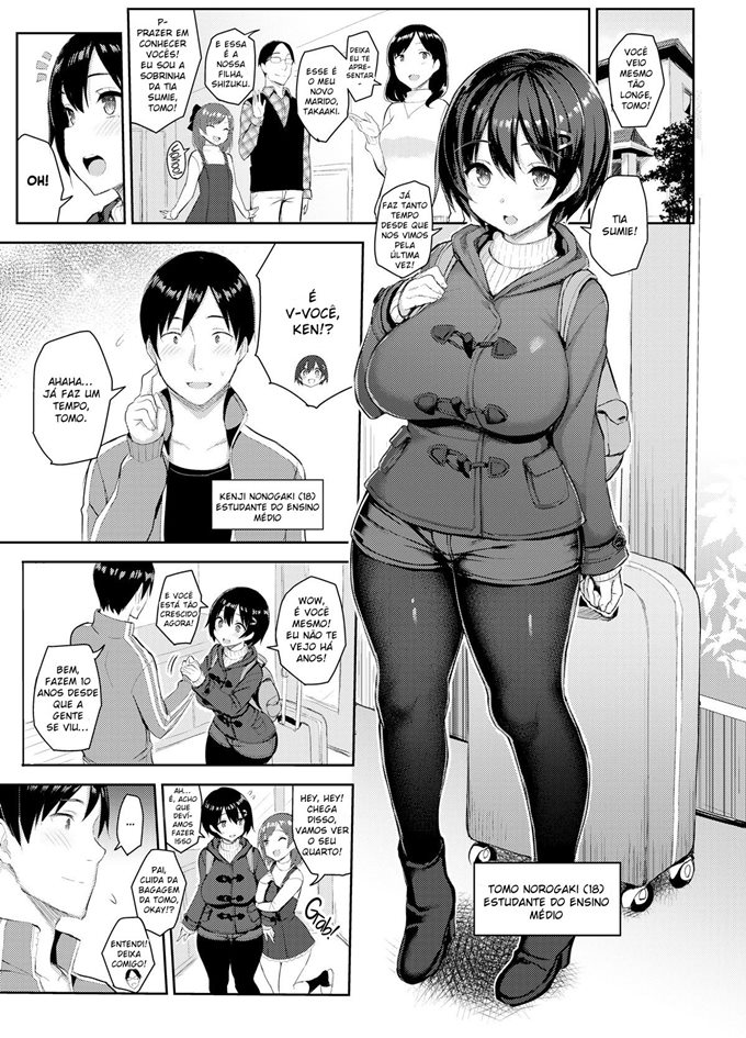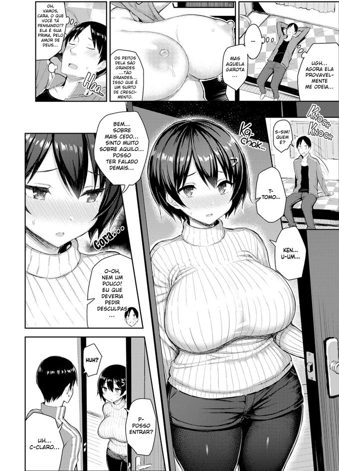 Na ultima ferias que esse sortudo teve sua prima mais velha que cresceu com ele foi fazer uma visita para ele. Como ela mora longe e fazia tempo que eles não se viam ela aproveitou o feriado e foi até lá. Então quando ele vê ela, ele vê como ela cresceu e como está gostosa agora. Então mais tarde naquela noite Kenji decide ir tomar banho. Mas quando ele abre a porta do banheiro sua prima estava lá peladinha.
