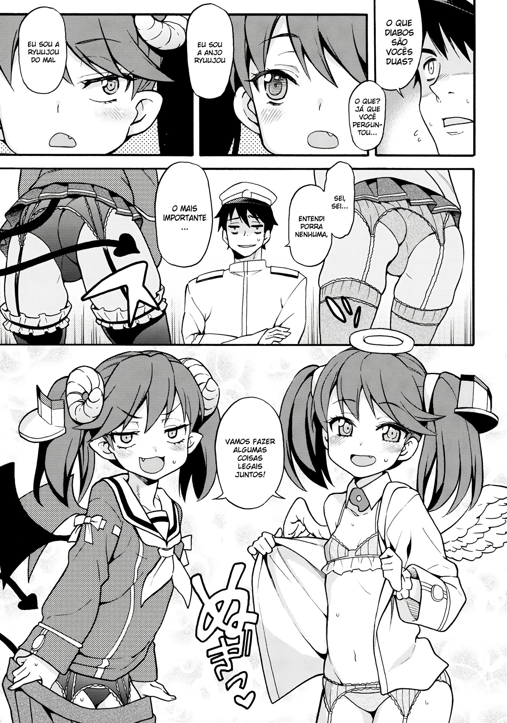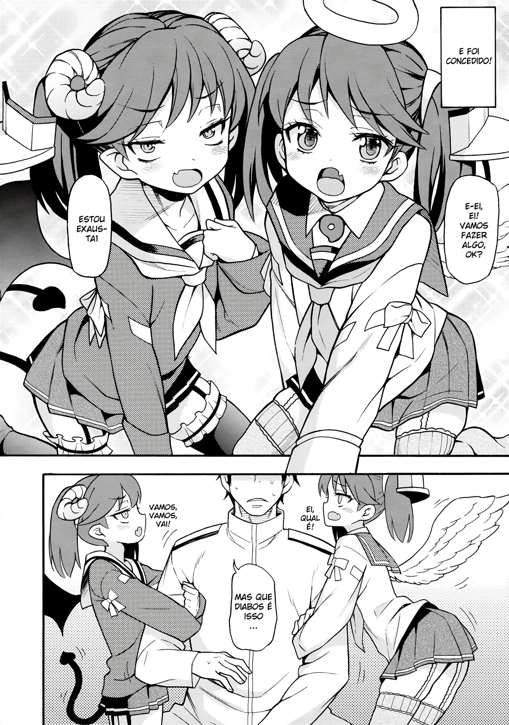 O almirante foi surpreendido pela deusa. Ela deixou duas filhas, Ángel e Diable. Eles adoram sexo. Com seios pequenos e bucetas apertadas, são implacáveis e não param até que a última gota de esperma seja drenada do Almirante. Mas ele terá que tomar cuidado, por que ele pode vir a morrer de tanto gozar.