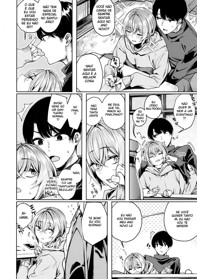 Com o final do ano chegando todos ficam ansiosos para verem ver a abertura dos portões do santuário. Yoshika e seu amigo estão em casa para poderem ver pela televisão. Ela então prepara um lanche para eles comerem, mas esse safadinho está pensando em comer outra coisa. Ele acaba ficando de pau duro e sem querer Yoshika acaba encostando no pau dele que fica mais duro. Então o safadinho não perdeu a oportunidade e partiu para o ataque para poder foder essa putinha safada.