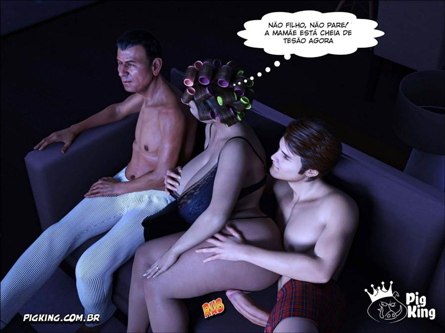 Olga ficou muito excitada é acabou pagando um boquete pro seu filho ali mesmo perto do seu marido. Depois disso ela voltou a assistir tv com seu marido mas seu filho continuou de pau bem duro. Então para deixar esse hq hentai mas excitante o danadinho acabou indo fuder com ela ao lado do papai corno.
