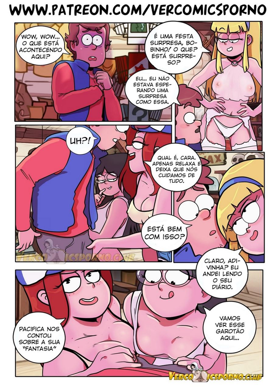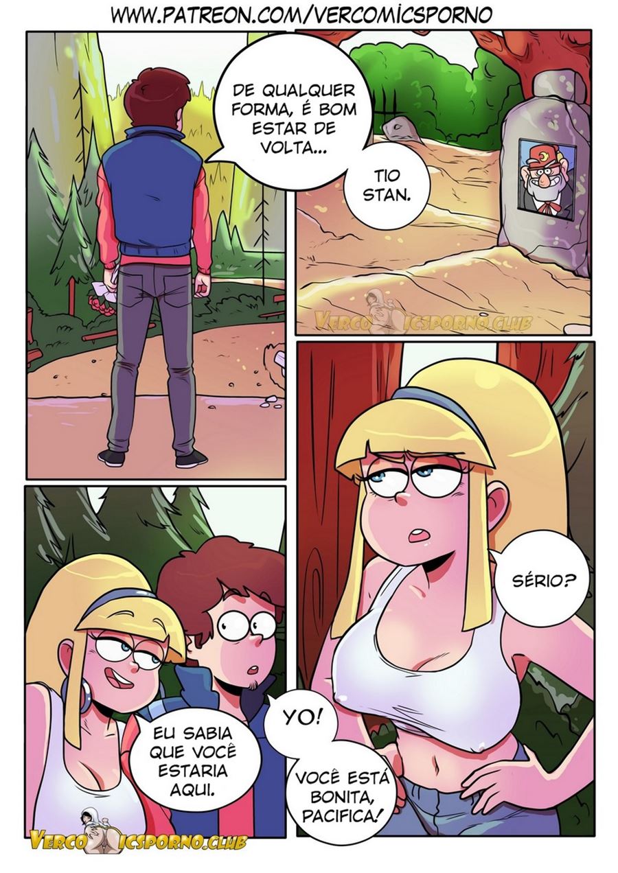 Dipper está de volta em Gravity Falls e Pacifica recebeu ele com muito amor e vontade de transar. Ela sendo bem danadinha planejou uma grande festa na qual iria terminar com ela mamando no pau dele. Tudo deu certo como o planejado e durante os quadrinhos eroticos ela transou de mais com o Dipper.