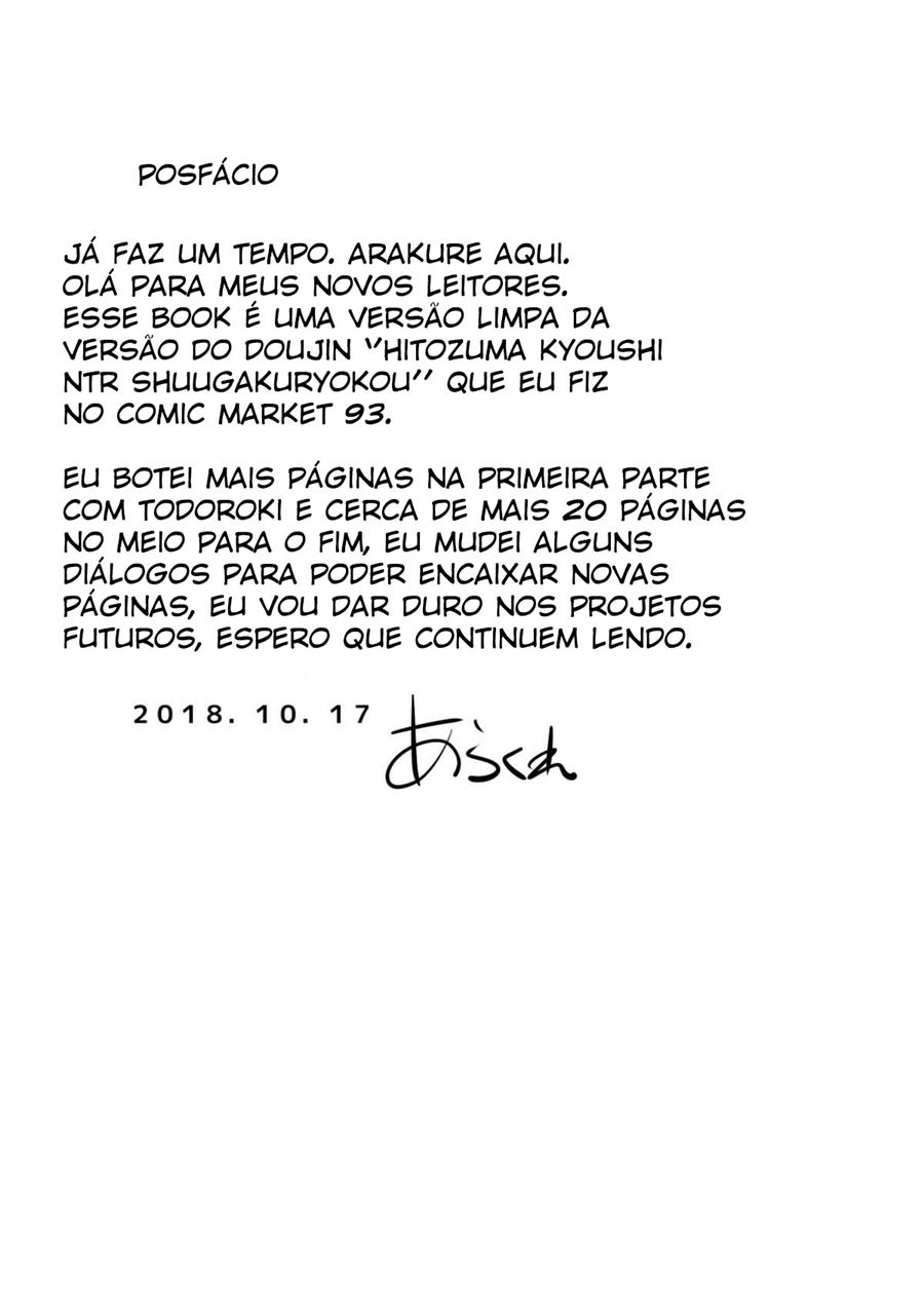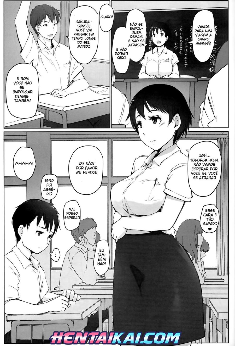 Hitozuma Kyoushi NTR Shuugakuryokou. A professora gostosa levou seus alunos para um passeio de cinco dias e Yuki e seu primo também estavam junto com ela. Porem Yuki começou a ficar muito solitário e a professora percebeu que ele estava um pouco triste. Afim de melhorar as férias dele a professora se aproximou mas dele. Num deu outra em minutos eles estavam fazendo quadrinhos eroticos e foram flagrados pelos outros alunos.