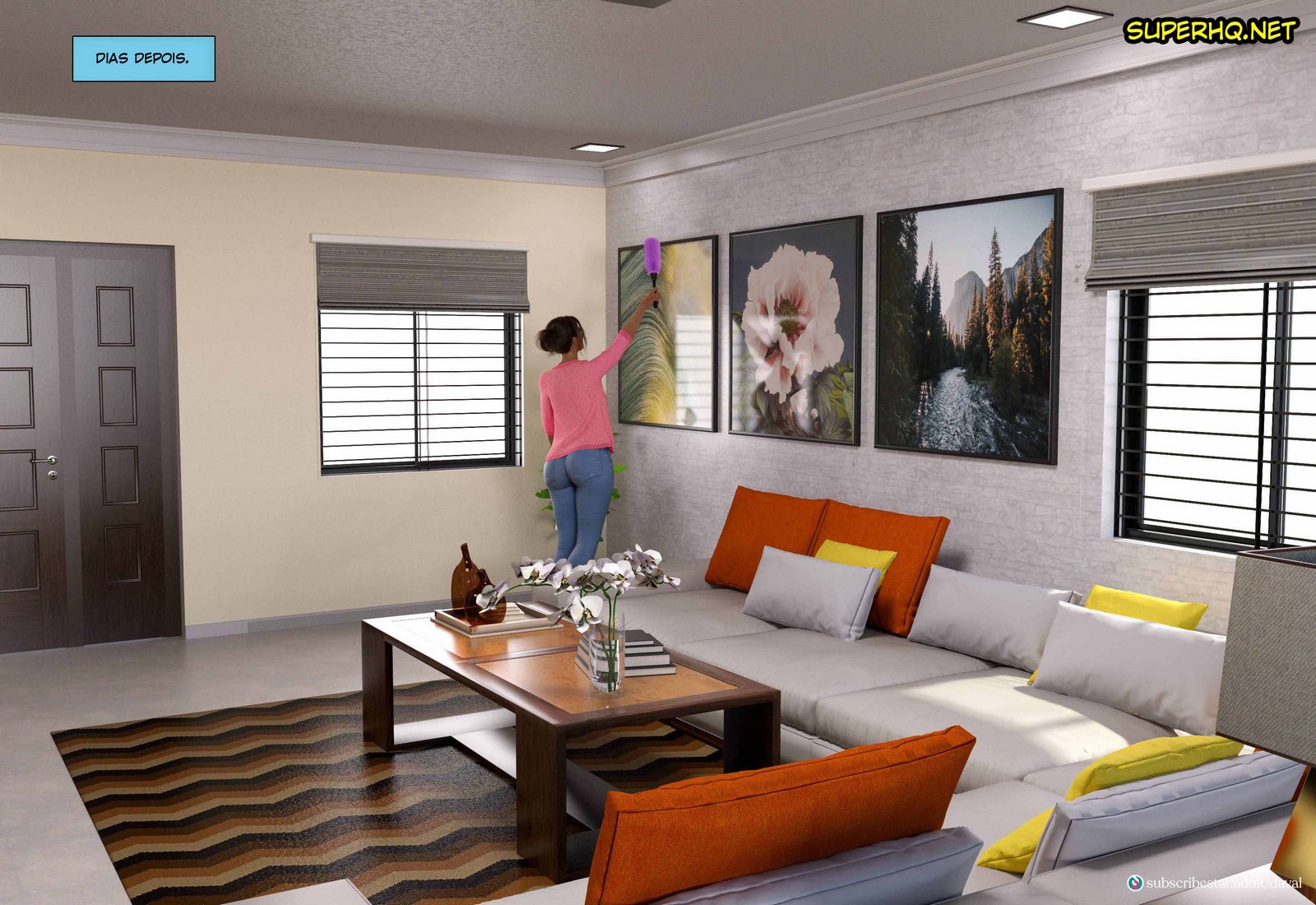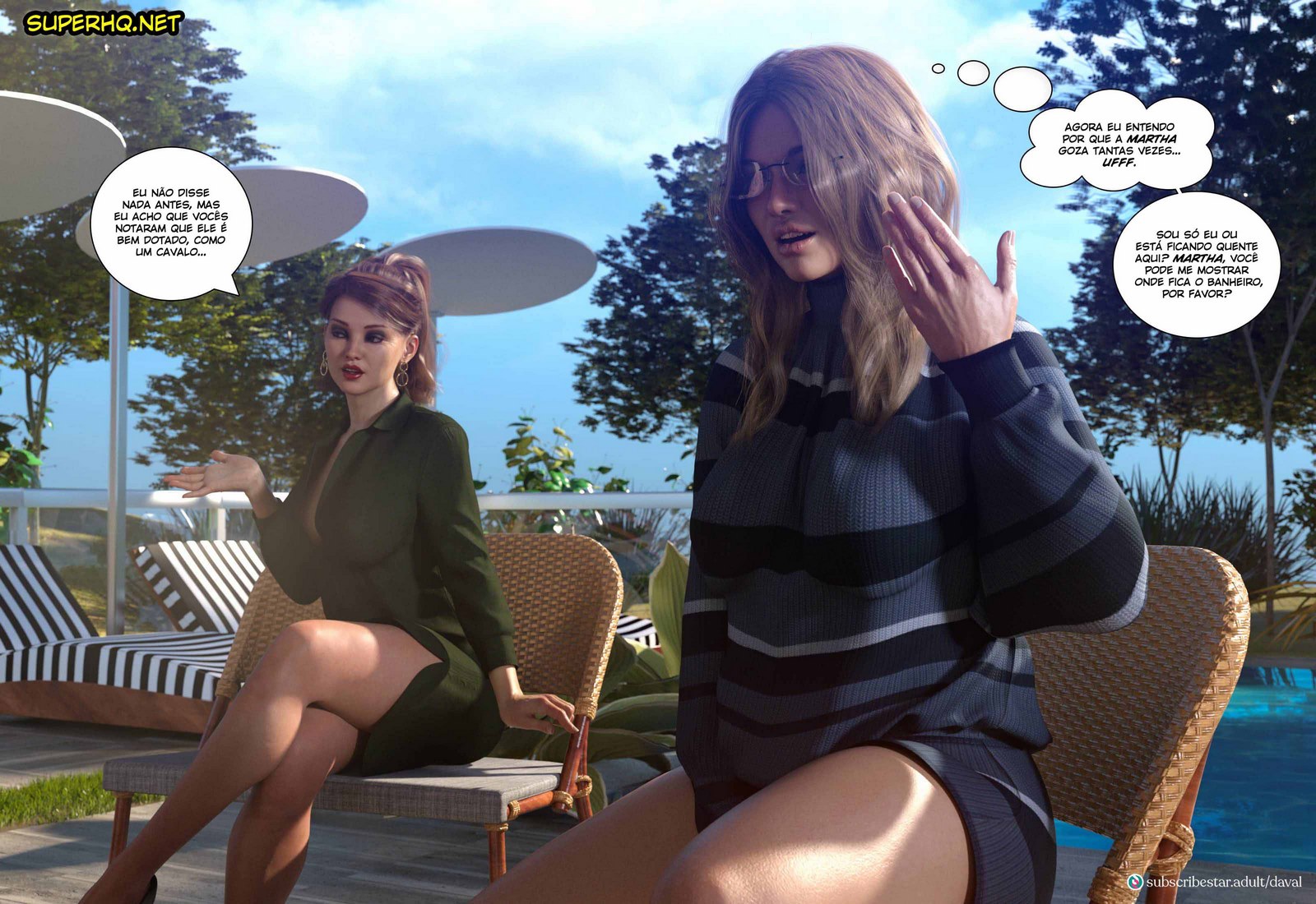 Lana é uma mulher muito gostosa que saiu para se encontrar com suas amigas e ter com elas uma tarde muito agradável. Mais o assunto dessas mulheres era apenas um, sexo e hentai 3d. Essas conversas foram deixando a Lana bem excitada e para piorar as coisas ela acaba flagrando uma cena de sexo. Assim que voltou para sua casa ela começou a lembrar de tudo que havia acontecido no super hentais e foi se masturbar.