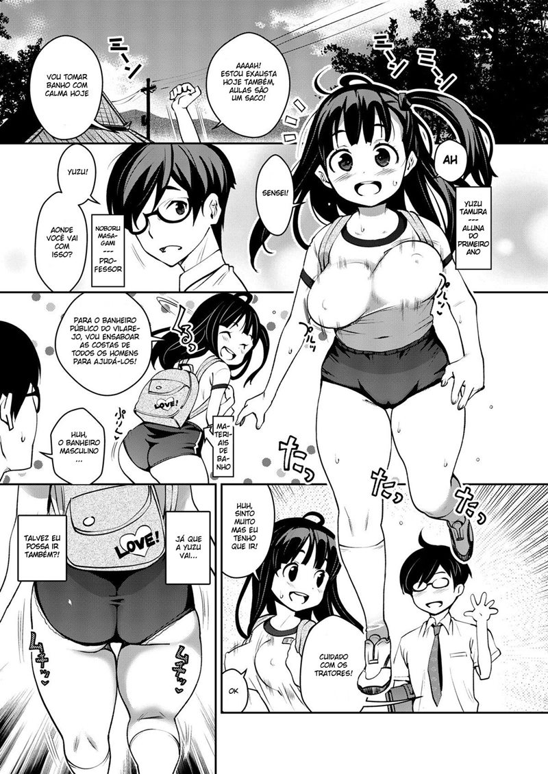 Desde que se mudou para o interior para poder substituir a outra professora. Esse safadinho está tendo relações com a aluna Yuzu, uma ninfeta muito safada que adora transar. Ela então vai até um casa de banho para poder tomar um banho mais tranquila, mas quando ela chega lá tem dois velhos tomando banho. Então no hq hentai essa putinha não perde a oportunidade de poder foder com os velhos.