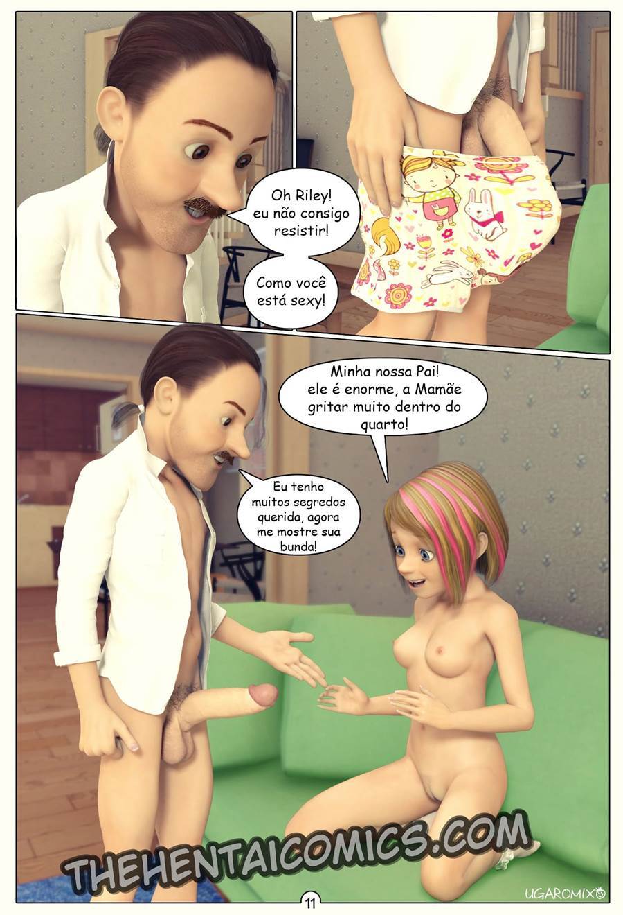 Inside Riley 1, a filha Riley esta com um arranhado na bucetinha é sem sua mãe em casa foi pedir ajuda ao pai para olhar sua pepeca. Ele olhou mas acabou ficando excitado com oque viu. Ao ver que seu papai estava de pau duro essa ninfetinha resolveu ajudar ele dando a bucetinha para ele meter.