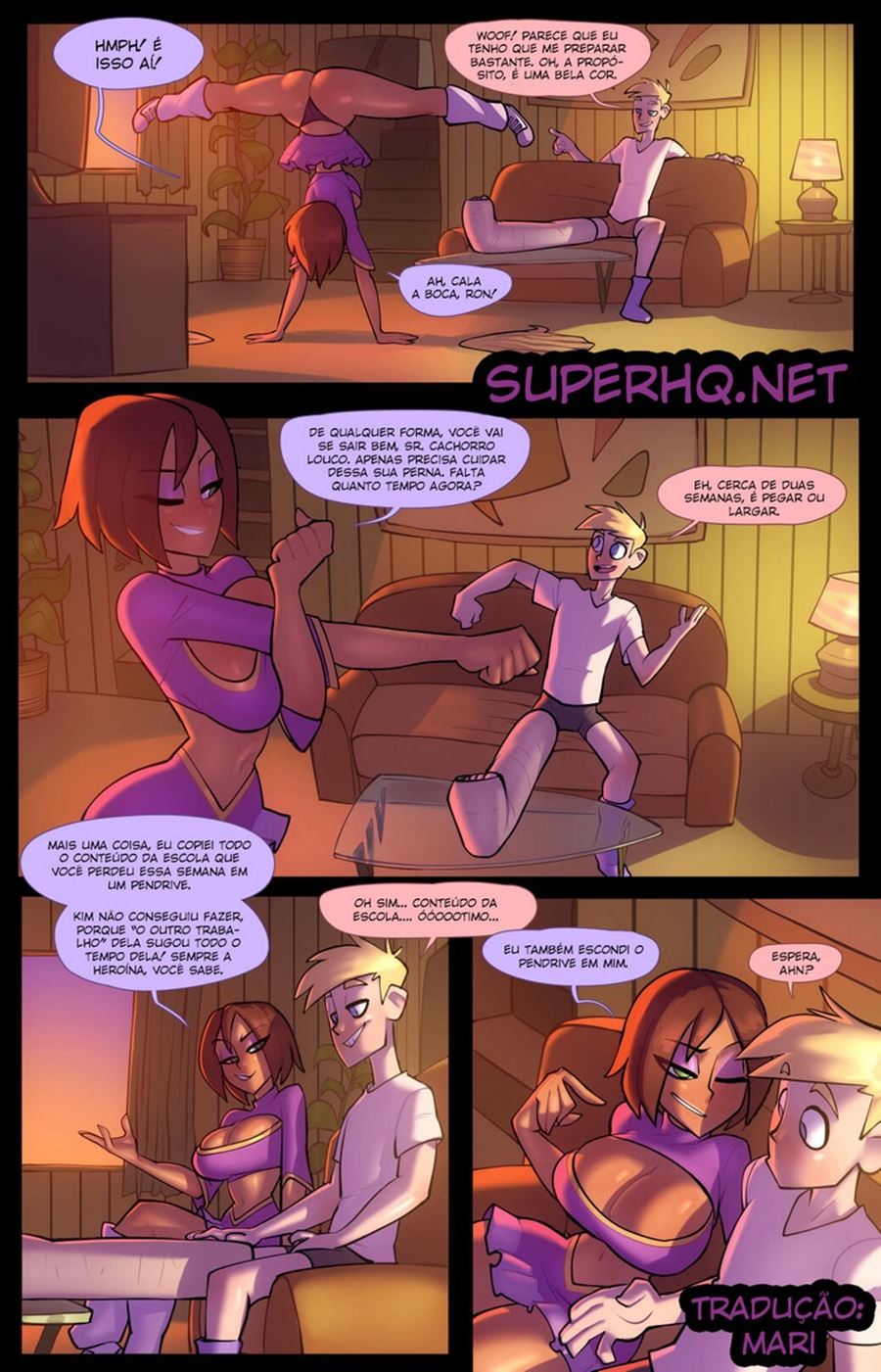 Ron quebrou sua perna é agora ficou uns dias em ir para escola, para a sorte dele a Bonnie tem um pendrive com tudo que ele precisa estudar. Porem essa gostosa deixou o pendrive guardado em seu corpo sexy e Ron terá que ajudar ela a encontrar. Dessa maneira essa gostosinha vai acabar ficando excitada e vai fazer um hentai hq bem gostoso com ele.