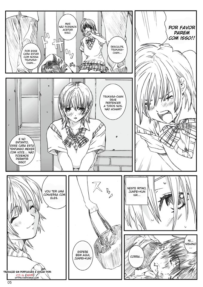 Tsukasa é uma loirinha muito gostosa, que por onde passa todos olham para ela. Sem ela saber ela tem um fã clube na sua escola que fica sabendo de tudo que ela faz. Eles então descobriram que Tsukasa estava tendo um caso com Junpei. Eles então ficaram extremamente enfurecidos e começaram a espancar Junpei. Para poder salvar Junpei, Tsukasa decide realizar todas as vontades deles. Agora ela vai se tornar a putinha desse três estudante que vão aproveitar cada segundo fodendo ela.