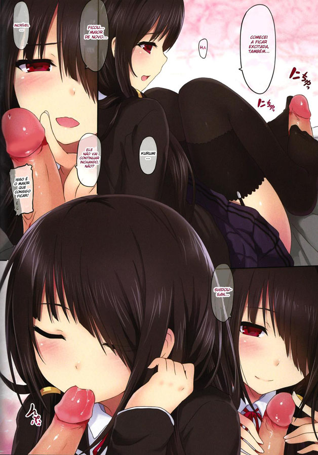 Shidou acorda e não sabe o que está acontecendo e não consegue mover o seu corpo. Mas quando ele abre os seus olhos ele vê Kurumi na sua frente e pergunta para ela o que está acontecendo. Kurumi então diz para Shidou que ela não consegue mais se segurar e levanta sua saia mostrando sua calcinha sexy para ele. Shidou então diz para ela abaixar a saia, mas ele não resiste e fica de pau duro. Ela então diz que o corpo dele quer que ela fique peladinha…