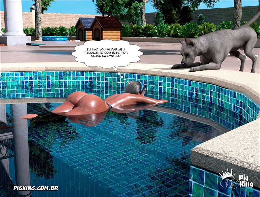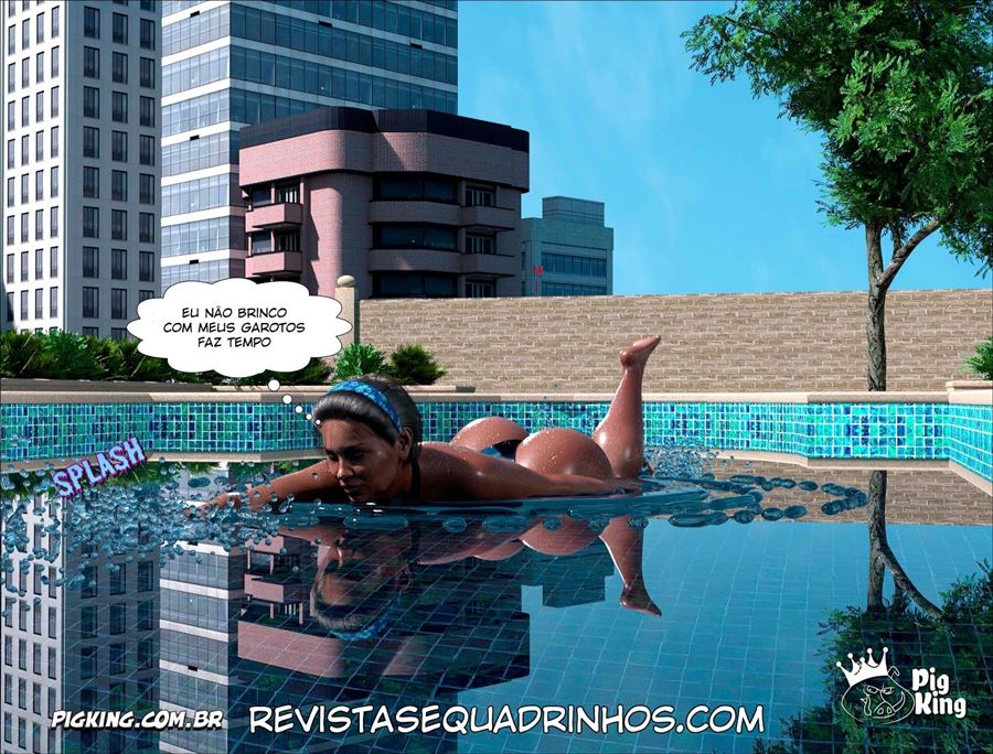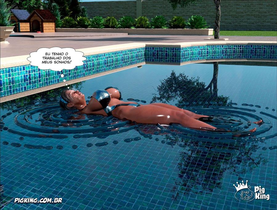 Enquanto Cynthia esta em seu quarto trepando bem gostoso com seu empregado. O Thor safado demais esta na piscina com a empregada que está de folga. Ela percebeu que ele estava estranho e quando foi olhar se deparou com o cacete dele bem duro. Como uma boa cuidadora ela caiu de boca fazendo um boquete nele.