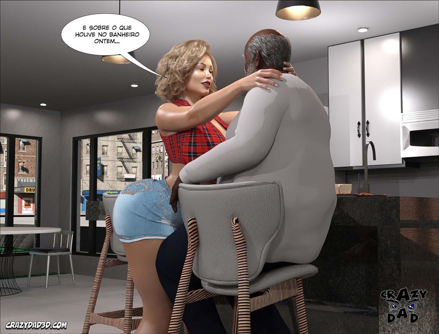Madison está deixando seu sogro muito excitado ao ficar de quatro exibindo seu corpo na frente dele. Isso tudo para deixar seu marido bem excitado pois ele ama ver outros homens desejando sua amada esposa rabuda. Depois de ver seu pai louco de tesao por sua esposa esse tarado levou ela pro quarto e foi foder bem gostoso.