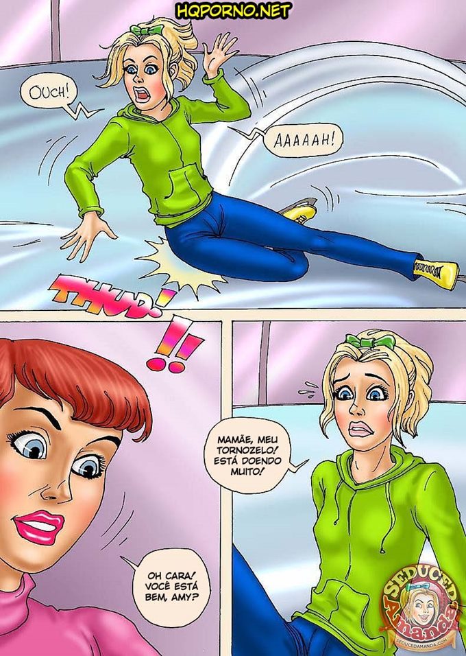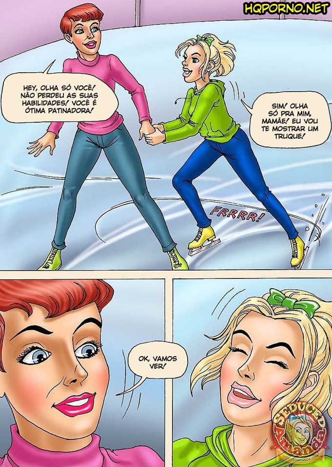 A mãe de Amy como passa muito tempo no trabalho decide tirar um dia para passar com essa ninfeta safadinha. Ela então chama sua filha para poder patinar no gelo e ela adorou a ideia. Mas assim que Amy começa a patinar ela acaba caindo e machucando seu joelho. Então sua mãe leva ela até uma sala separada e tira a calça dela para ver seu machucado. Mas como sua filha estava sem calcinha ela não resistiu e acabou caindo de boca na boceta de sua filha fazendo muito yuri hentai com essa safada.