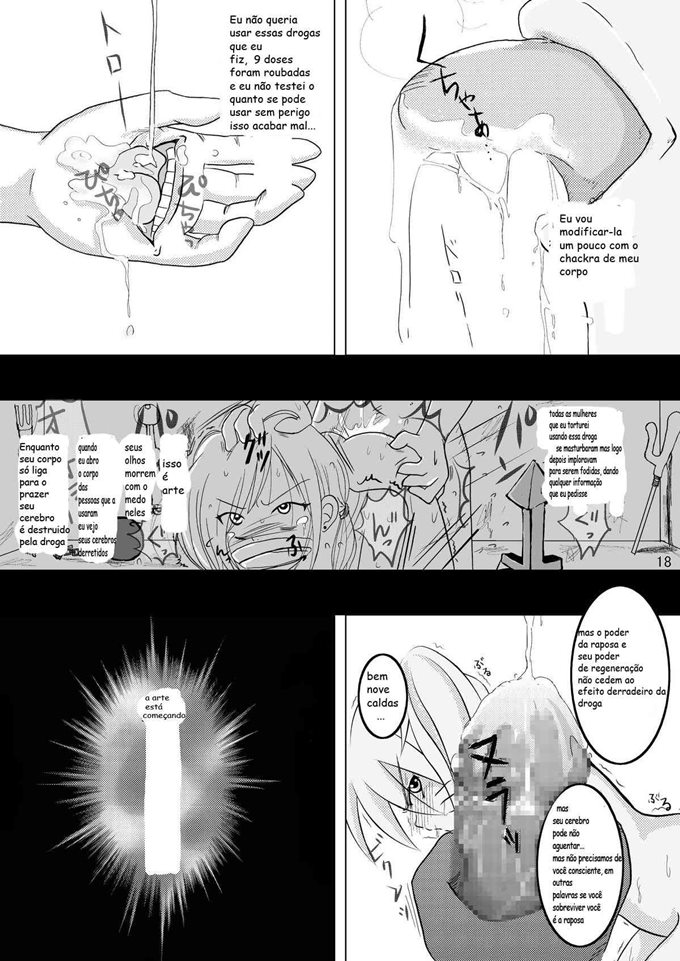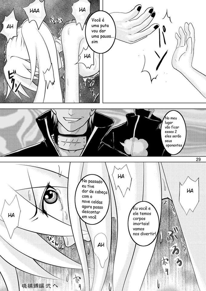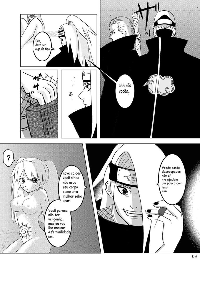 Em uma realidade paralela de Naruto, Naruto é uma ninfetinha muito gostosa com a Kiuby dentro dela. A organização Akatsuki está atrás de todos os bijus para poder realizar o plano deles. E dessa vez eles vão atrás do Naruto, depois de uma longa batalha eles finalmente conseguem capturar ela. Agora ela está a mercê deles. Eles agora estão prontos para poder tirar a Kiuby dentro dela, mas os métodos para fazer isso é com muito sexo e muita putaria manga hentai.