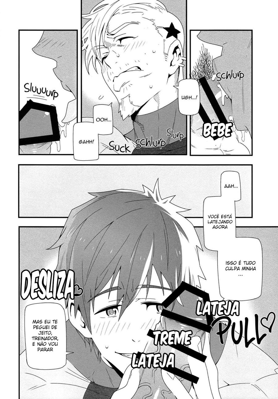 Após o treino acabar esse rapaz continuou no local para falar com seu treinador. Assim que chegou na sala do treinador percebeu que ele estava dormindo com a roupa toda molhada. Ele pensou em avisar o treinador sobre a roupa molhada para ele não adoecer. Mais antes disso ele não poderia deixar a oportunidade de fazer hentai gay com ele escapar.