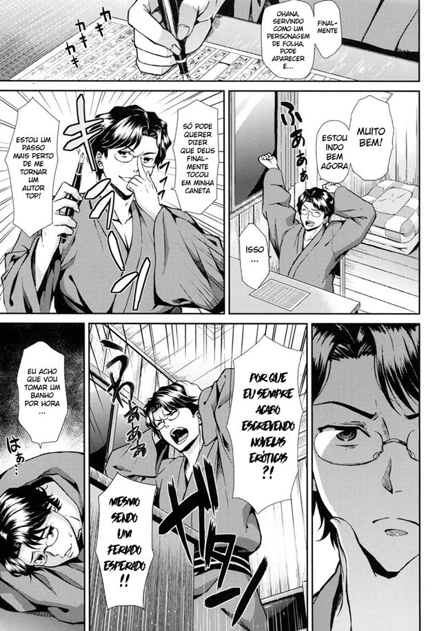 Esse escritor está acabando de escrever mais uma grande obra, mas ele acaba chegando a conclusão que ele sempre escreve histórias eróticas. Ele está escrevendo uma novela erótica baseada na sua assistente Nako. Então ele chega a conclusão que essa será a ultima novela erótica que ele vai escrever e decide ir tomar um banho. Mas quando ele chega nas fontes termais ela acaba encontrando com Nako peladinha querendo animar o hentai brasil.