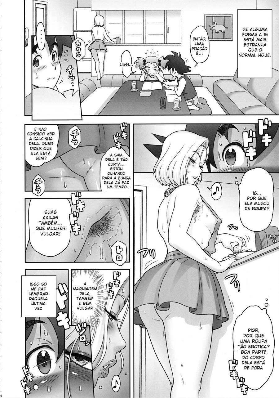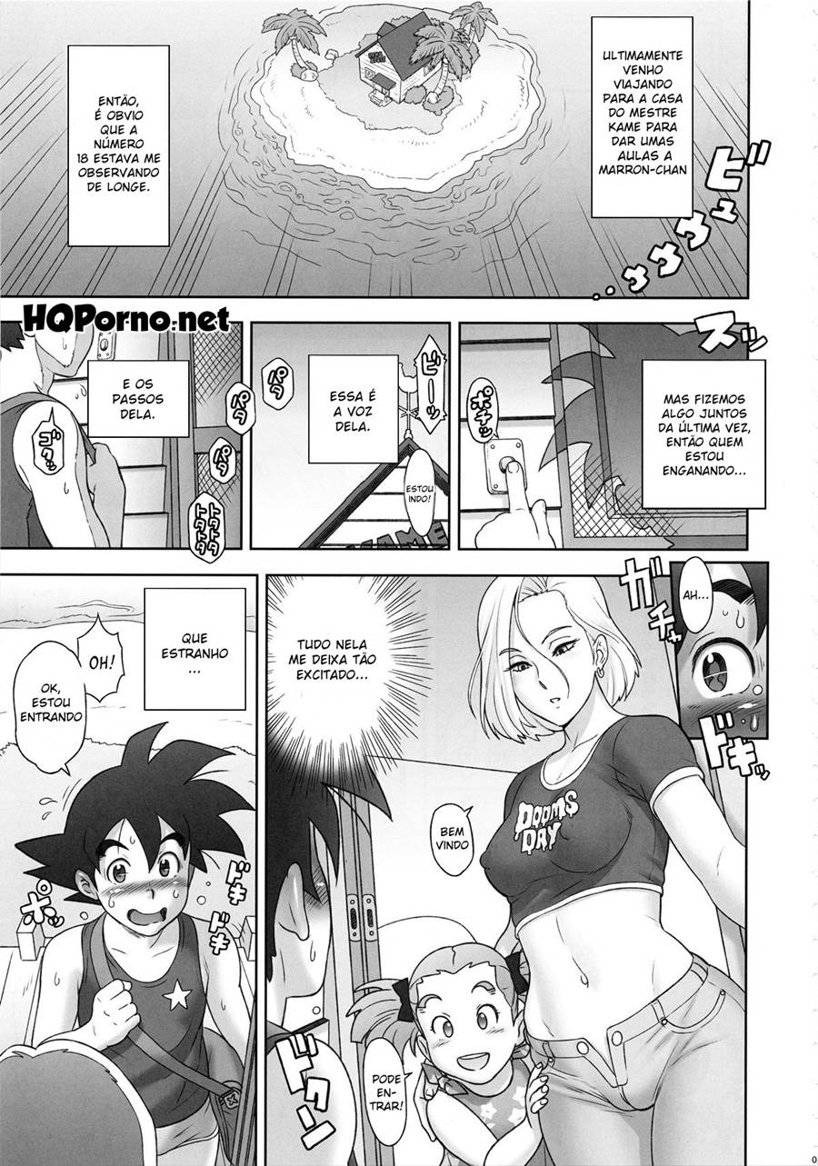 Dragon Ball Z em Nippon ZENKAI Power, Goten sempre está na casa do seu amigo Kuririn ajudando a filha dele em certas coisinhas. Mais a esposa dele a Android 18 percebeu que esse jovem vem olhando bastante para a sua bunda grande. Com isso essa gata está decidida a fazer um sexo delicioso com ele nesse mangá hentai.