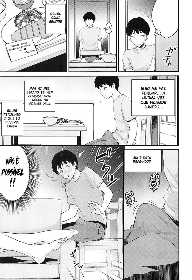 Depois de um longo dia estudando esse jovem finalmente chega em casa. Então quando ele chega sua irmã diz para ele que o pais deles tiveram que sair e assim que a comida ficar pronta ela vai chamar ele. Ele fica extremamente envergonhado por estar sozinho com sua irmã, e quando vê a roupa que ela está ele fica de pau duro. Mas para a sorte dele sua irmã está disposta a ajudar ele com sua ereção.