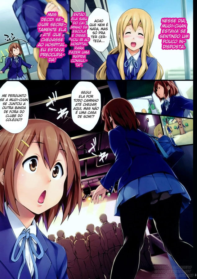 Naquele belo dia Mugi me disse que não estava se sentindo muito bem. Então ela me disse que iria para o médico consultar para ter certeza que não era nada. Mas Mugi nunca foi de passar mal ou algo do tipo, então resolvi segui-la só por precaução. Segui ela por todo o caminho até chegar em uma casa de shows. Eu até cheguei pensar que ela tinha trocado a banda da escola por essa casa de shows. Mas quando eu vi ela tirando os peitos para fora não podia acreditar no que estava vendo.