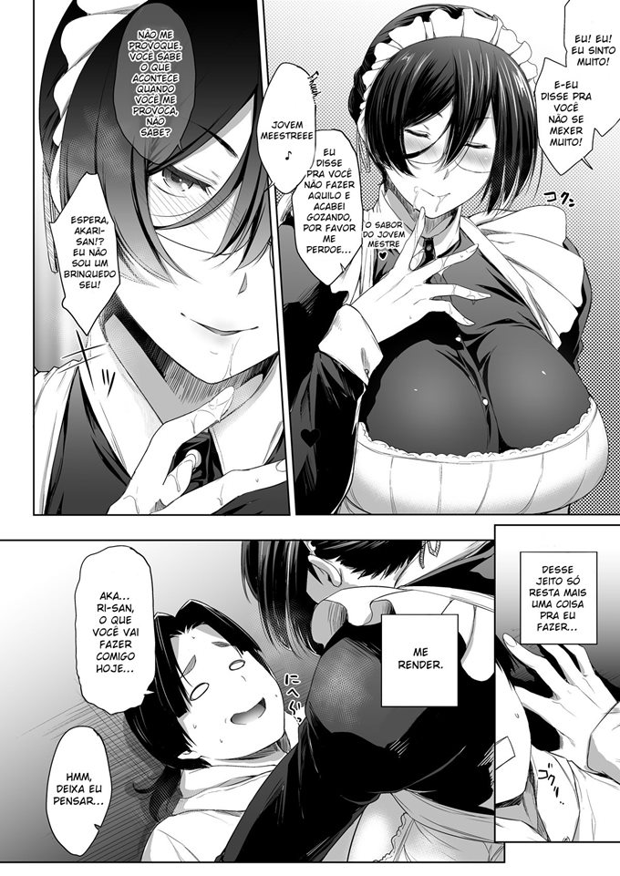 Os pais desse jovem tiveram que fazer uma viagem de negocios, e para não deixar seu filho sozinho eles contrataram uma empregada para ficar com ele. Então eles chamaram uma que eles sempre chamam quando vão viajar. Ela então acabou virando a namorada de seu mestre, ele está em casa sozinho pois ela tinha saído. Então assim que ela chega ela vai direto no seu jovem mestre ver como ele está.