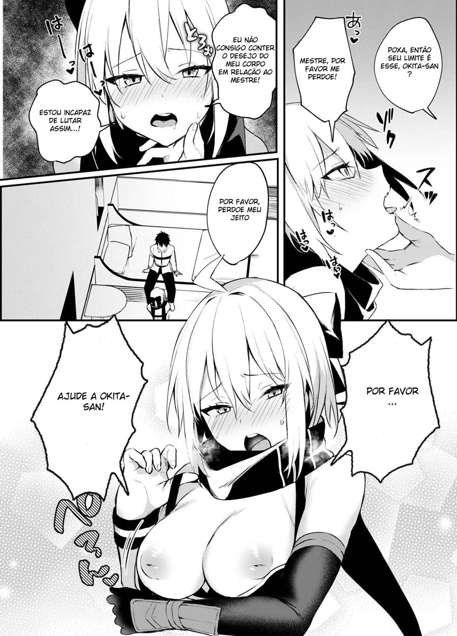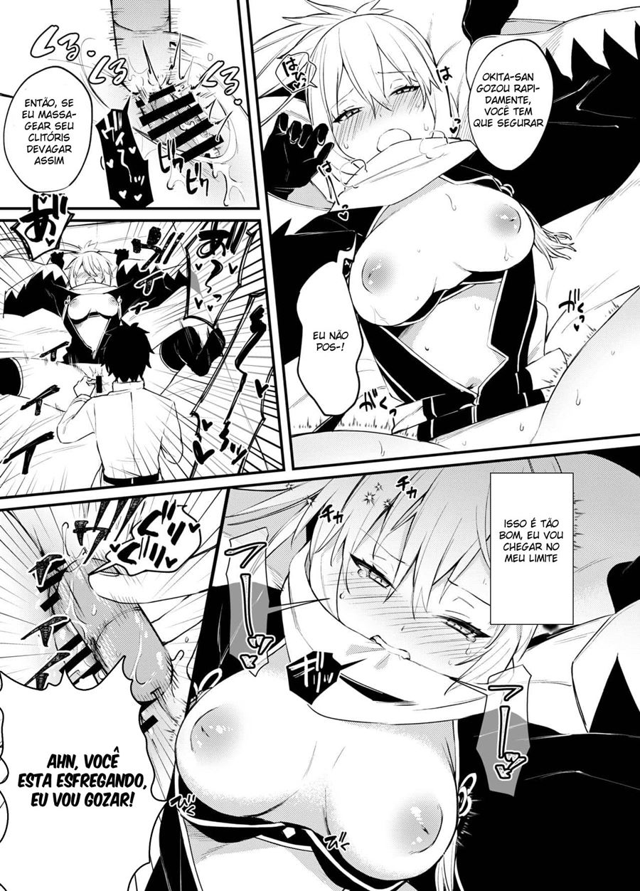 Okita-san Gaman Dekimasen! Okita-san a algum tempo está louca para ganhar um traje de banho mais infelizmente nunca conseguiu obtê-lo. Seu mestre sendo um pervertido comprou o traje e deu de banho para a safada do hentai hq. Mas como agradecimento essa gostosinha terá que fazer qualquer coisa que ele ordenar.