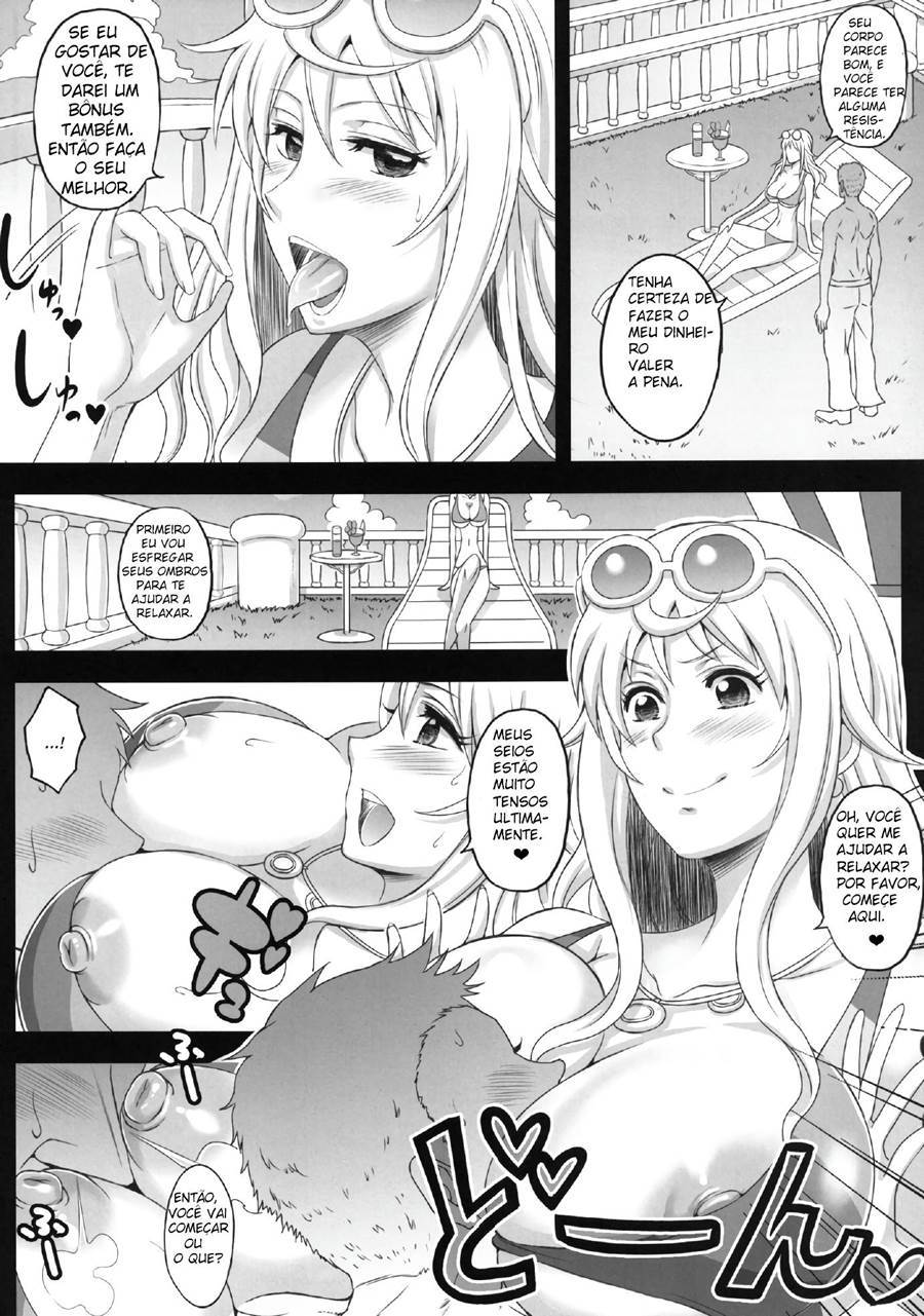 Nami a safadinha esta cuidando do navio enquanto os chapéus de palha estão fora dele pois todos foram a cidade. Mas essa gatinha está completamente louca de tesão e mais uma vez contrata os serviços sexuais dessa ilha. Iremos conferir mais um One Piece Hentai com essa gostosinha transando muito.