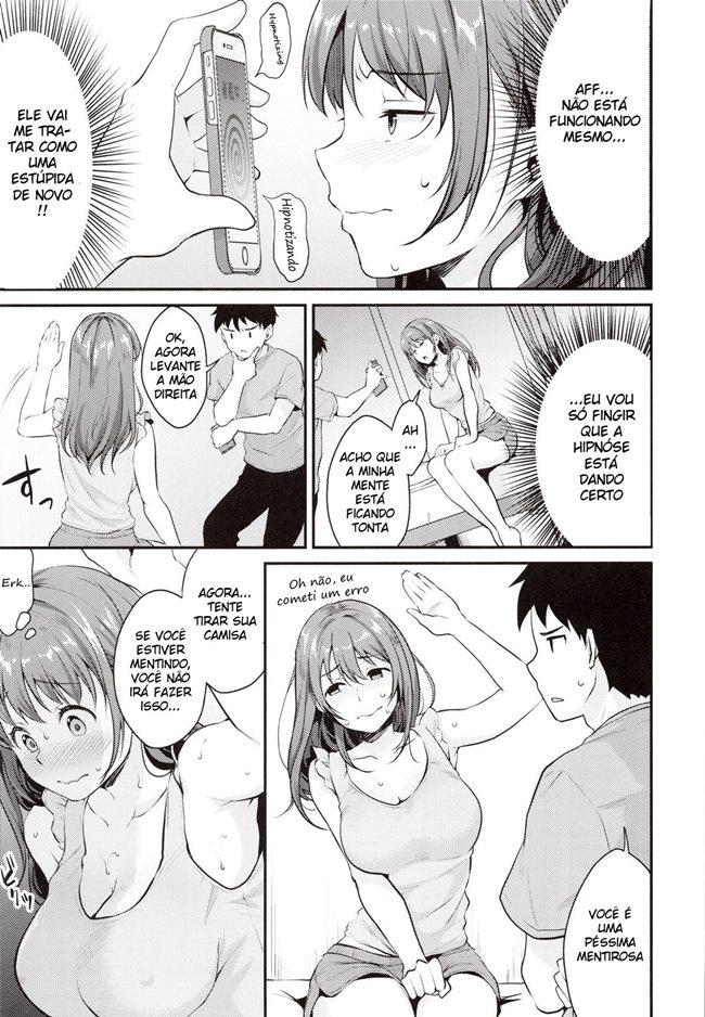 Essa ninfeta está em sua casa mexendo no celular quando acaba descobrindo um aplicativo de hipnose. Ela então fica curiosa para ver se realmente funciona e decide usar no Ryou. Ryou é seu irmão mais novo, ele sempre foi muito carinhoso mas como está na adolescência está rebelde. Então ela decide usar nele para ver se ele muda. Mas Ryou acaba pegando o celular dela e ela que fica hipnotizada tendo que iniciar um incesto em hqs com ele.