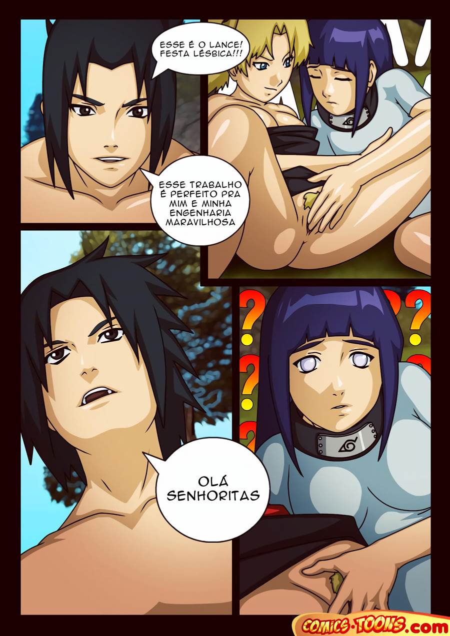 Sasuke esta escondido olhando as duas lesbicas Hinata e Temari transando bem gostoso. O tesão é de mais é ele acaba entrando no meio da sacanagem com essas deliciosas mulheres. As duas acabam dando um trato sexual nesse malandro que vai se dar muito bem com essa trepada insana e gostosa.