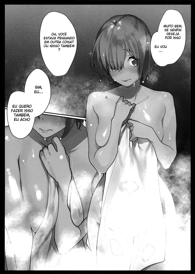 Mash decidiu ir fazer uma visita no quarto do seu Senpai. Até então ela estava só querendo comer algo e jogar conversa fora. Mas a medida que eles foram conversando as coisas foram esquentando cada vez mais. Ela então toma uma bebida que ela trouxe que deixa a pessoa mais safada e louca de tesão. Então Mash assim que bebeu ficou louca para dar para seu Senpai.