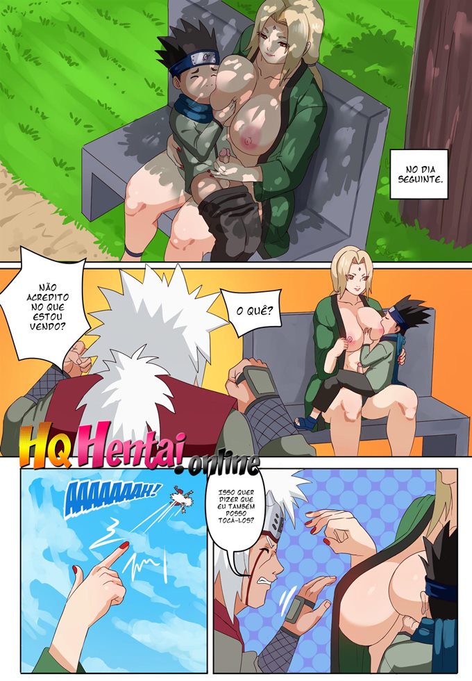 Tsunade sempre foi assediada por Konohamaru que sempre foi louco para poder foder essa milf gostosa. Mas depois de muita insistência ela começou a considera a fazer sexo com esse safadinho. Então assim que ele aparece já vai logo dando um abraço nela, para ver a reação dele ela acabou mostrando os peitos para ele. Konohamaru ficou apaixonado e de pau duro na hora, mas Tsunade queria só atiçar o jovem. No dia seguinte ela vai atrás dele para poder deixar ele encher sua bocetinha de porra e realizar seu sonho de fazer hentais com essa gata.