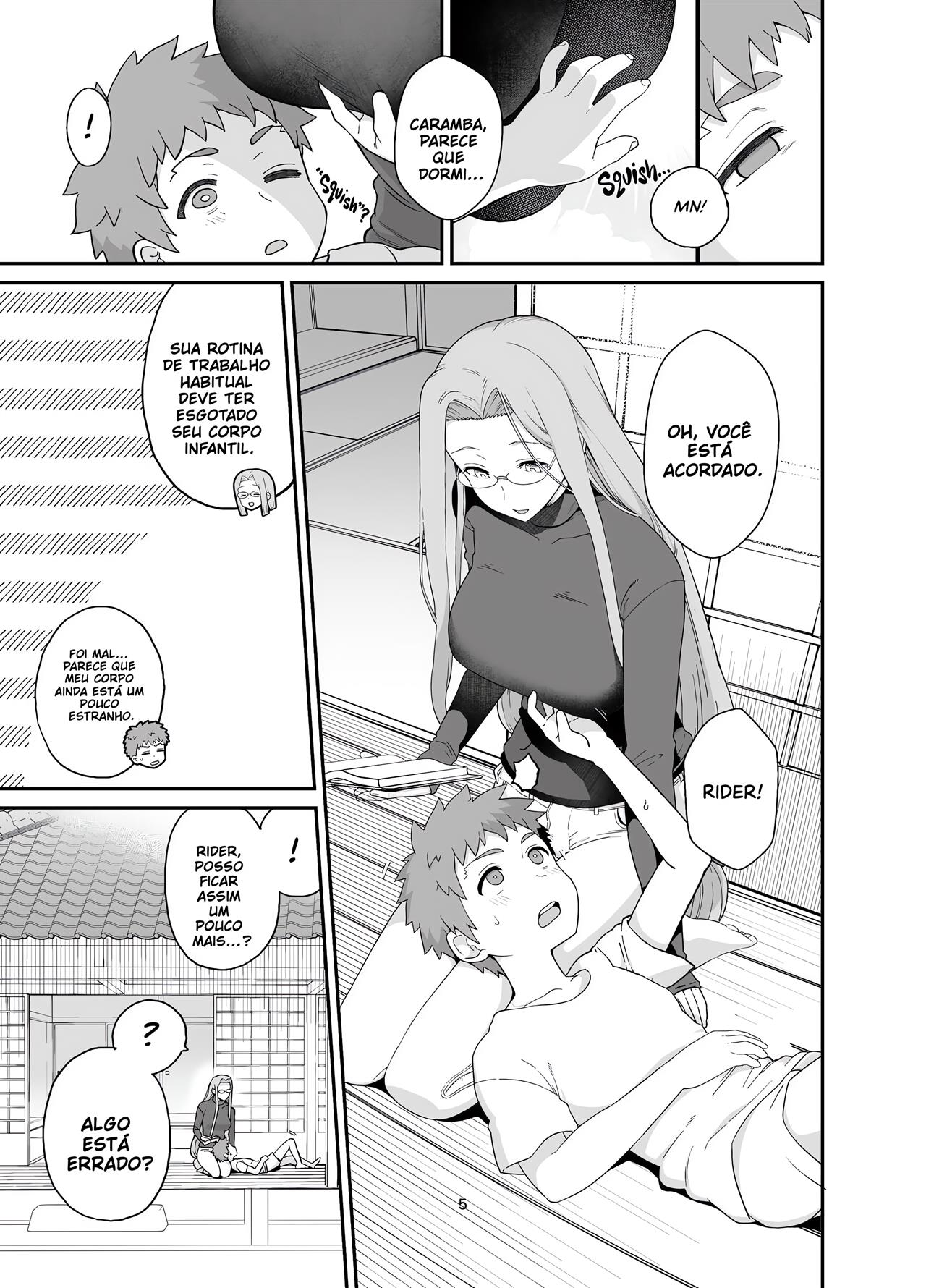 Shirou não sabia, mas acaba de mudar sua vida por completo, ele ingere um suprimento que fará com que ele volte a ser jovem. Então ele fica sob os cuidados da lindissima Rider ,enquanto as demais garotas tentam encontrar um antidoto. E desde então, ela considera ele como seu irmão mais novo e querendo mimá-lo de todas as maneiras. Porém embora o corpo de Shirou tenha diminuído, seu apetite sexual continua o mesmo e Rider terá que fazer algo para resolver essa situação embaraçosa.