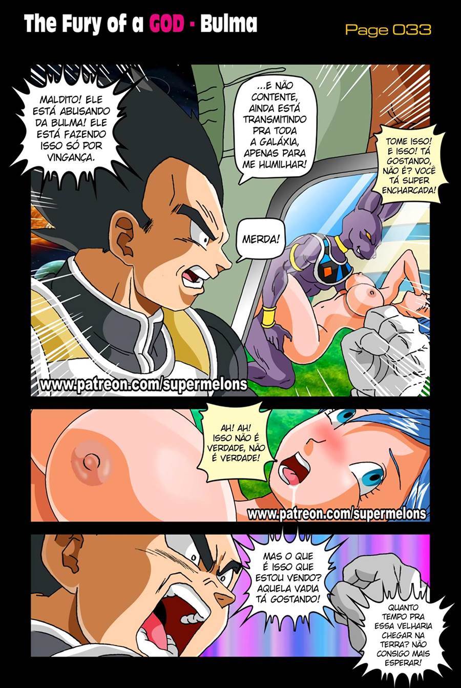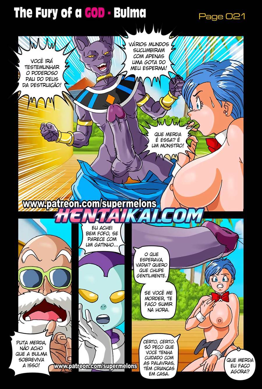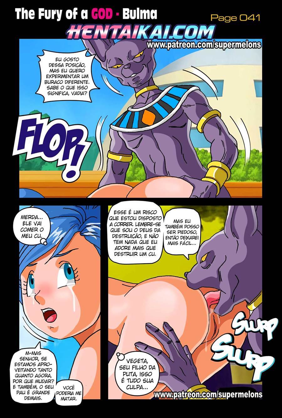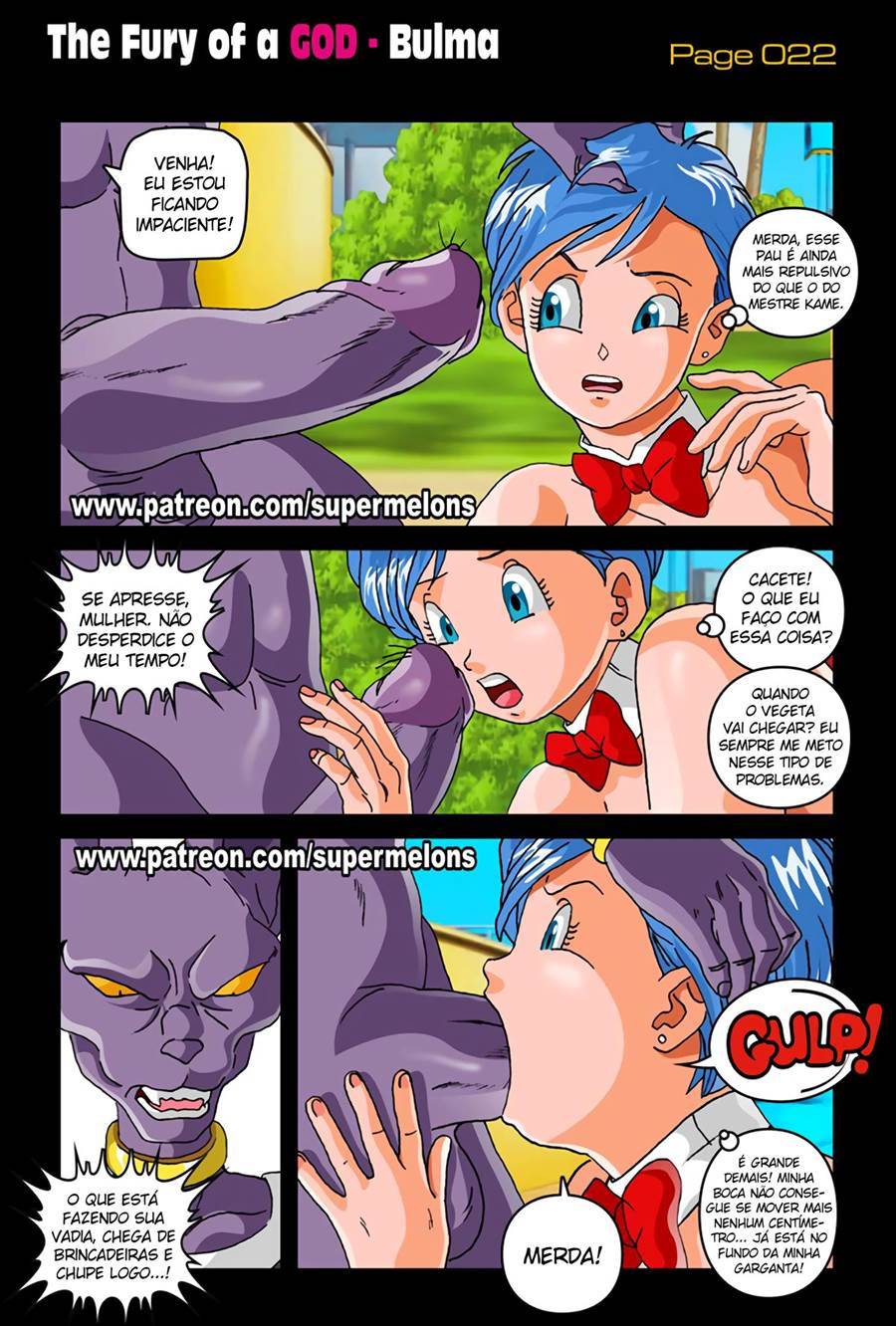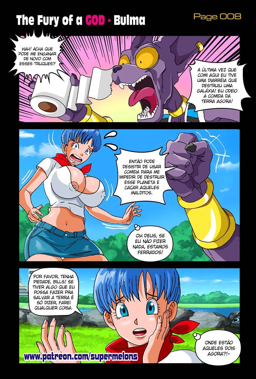 Beerus, o Deus da Destruíção esta metendo na buceta da Bulma a milf mais gostosa do DBZ. Tudo isso porque seu marido Vegeta deixou ele bem irritado é ele iria destruir completamente o planeta terra. Ao ver que ela poderia salvar o planeta dando algo gostoso para ele comer, a safada ofereceu nada mais nada menos que sua buceta e seu cu.