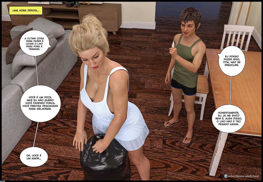 Depois de pegar uma cena bem apimentada rolando no banheiro com sua tia gostosa o David ficou completamente excitado. Agora ele olha essa gostosinha com outros olhos é vai fazer de tudo para agradar ela ao máximo. Dessa maneira ele pretende sim conseguir fazer seu primeiro hentai incesto.