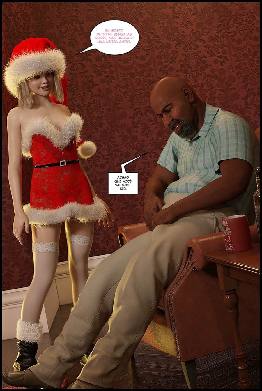 Loirinha rabuda muito gostosinha vai realizar o desejo de alguém neste natal e para isso ela foi bater na porta de um sortudo. Porem essa gostosinha bateu logo na porta de um velho negro bem dotado que teve a sorte de escolher seu presente. Neste hentai essa gostosa tem que realizar os desejos de alguém e o desejo desse velho e foder a sua buceta.