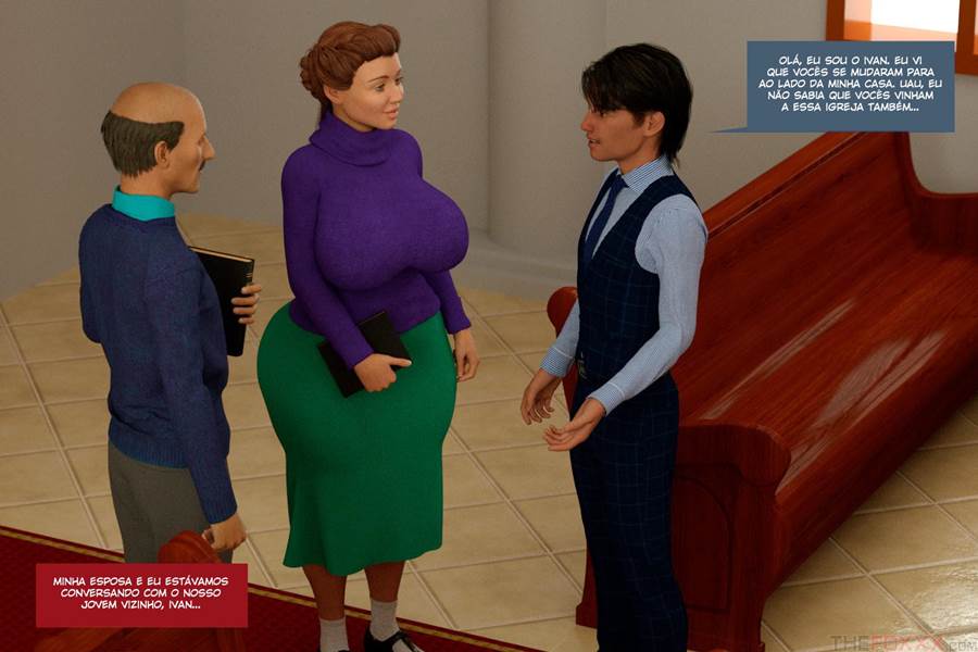 Este homem e casado com essa bela mulher que adora ir a igreja, mesmo sabendo que traição e pecado ela que agradar seu marido que tem tesão de corno. Para isso ela está disposta a fazer sexo com um jovem dotado membro da igreja. O corninho está muito excitado pois ao ver outro homem pegando sua esposa era seu sonho.